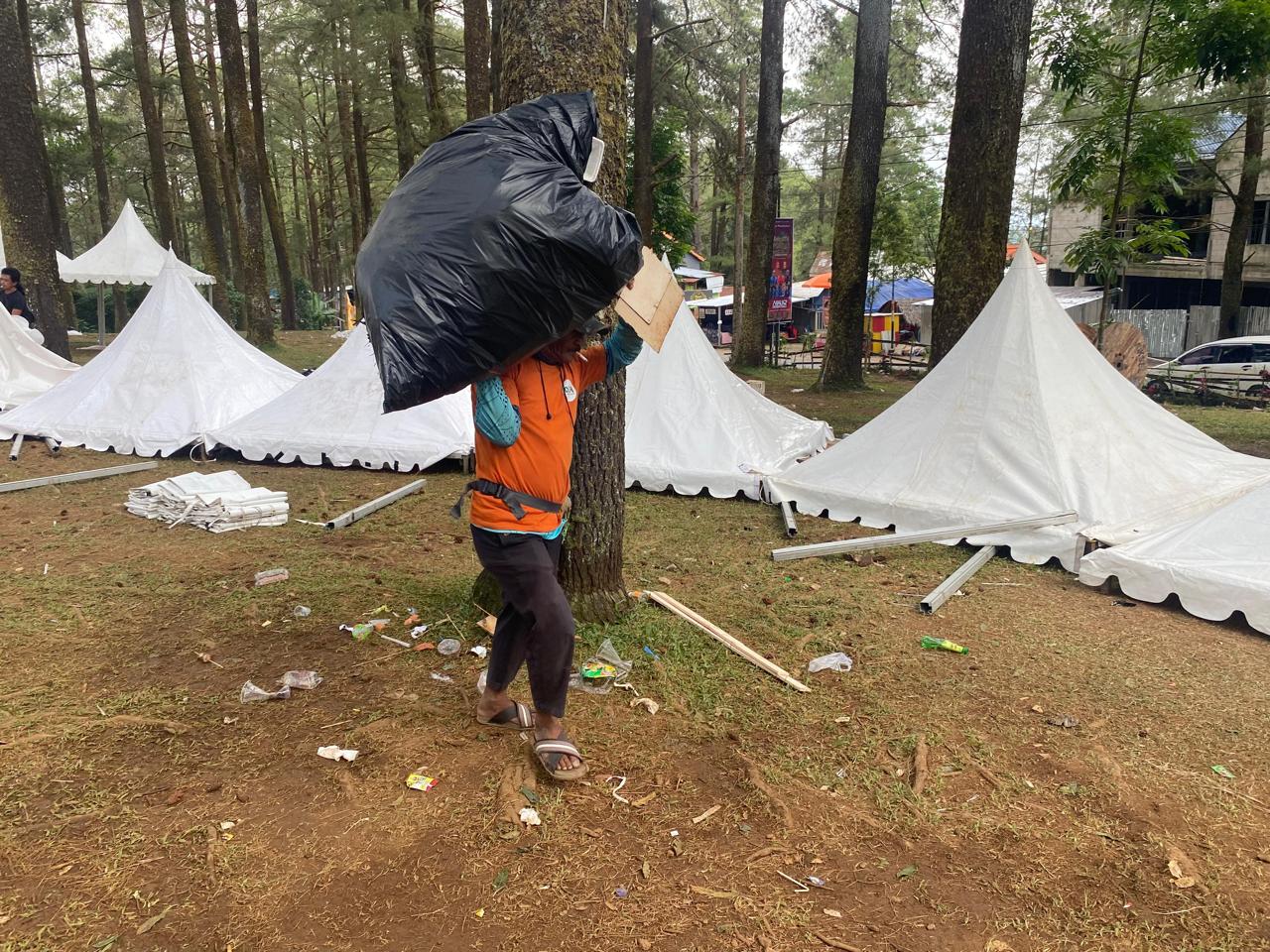 “Kegiatan pembersihan dilaksanakan dengan membagi seluruh personil gabungan yang ada untuk menangani sampah pada tiga titik area pusat kegiatan,” ujarnya.