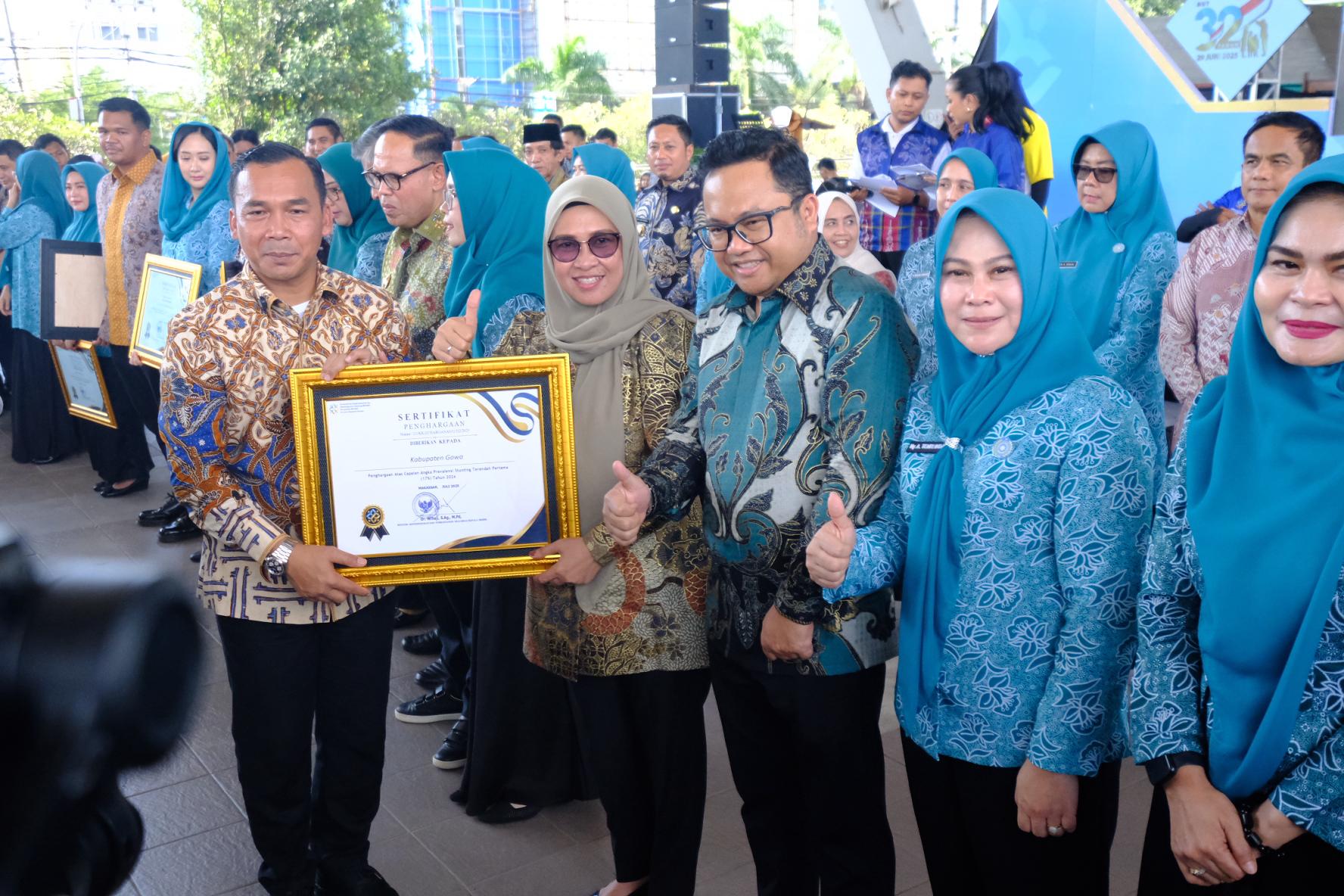 Penghargaan ini diberikan sebagai bentuk apresiasi atas dukungan dan komitmen Pemerintah Kabupaten Gowa dalam mengimplementasikan program prioritas Quick Wins dari Kementerian BKKBN, khususnya dalam program Bangga Kencana yang bertema “Dari Keluarga untuk Indonesia Maju”.