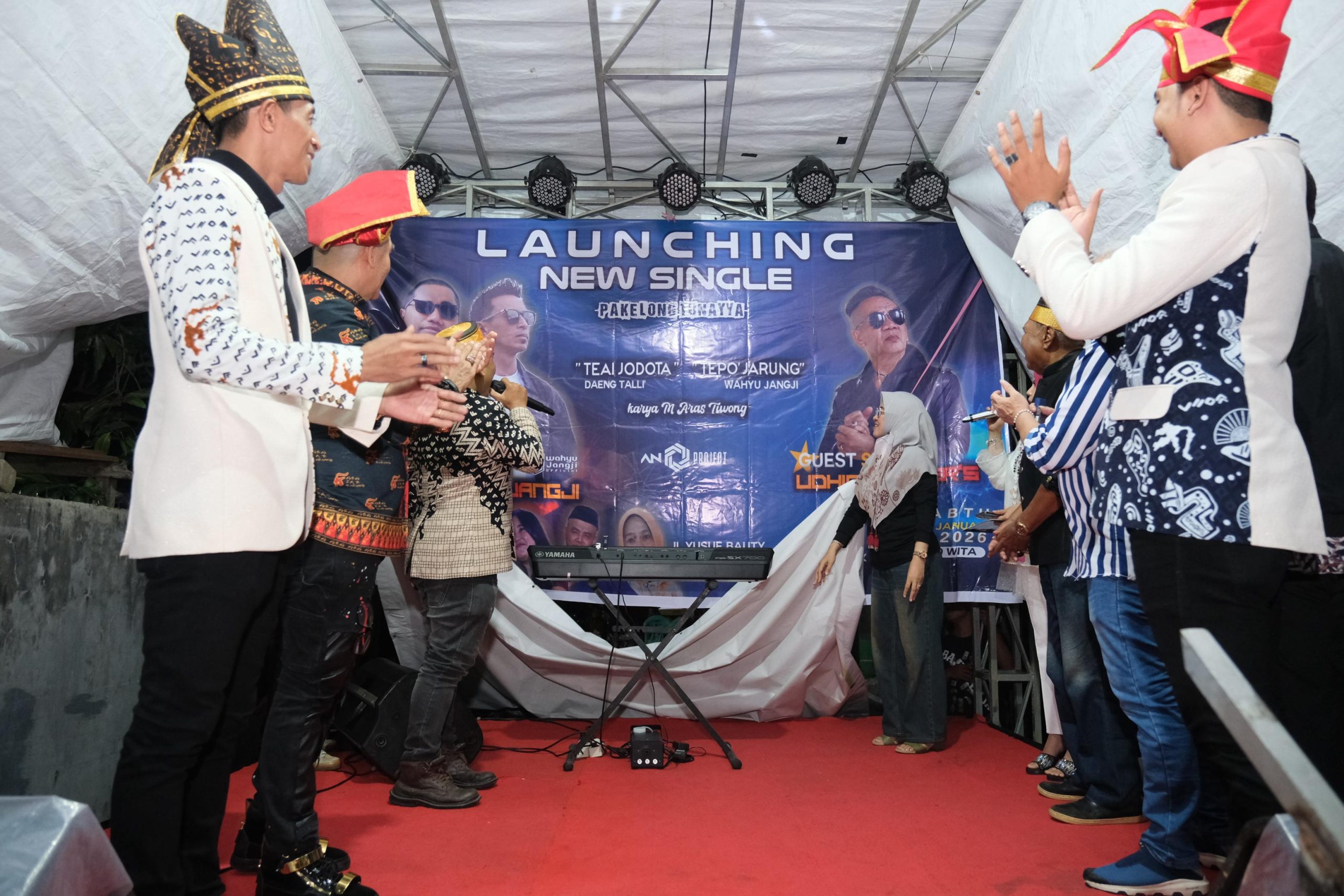 GOWA – Bupati Gowa, Sitti Husniah Talenrang menghadiri launching single terbaru “Teai Jodota” karya Daeng Talli dan “Tepo’ Jarung” karya Wahyu Jangji di Perumahan Gowa Lestari pada Sabtu, 3 Januari 2026 malam.