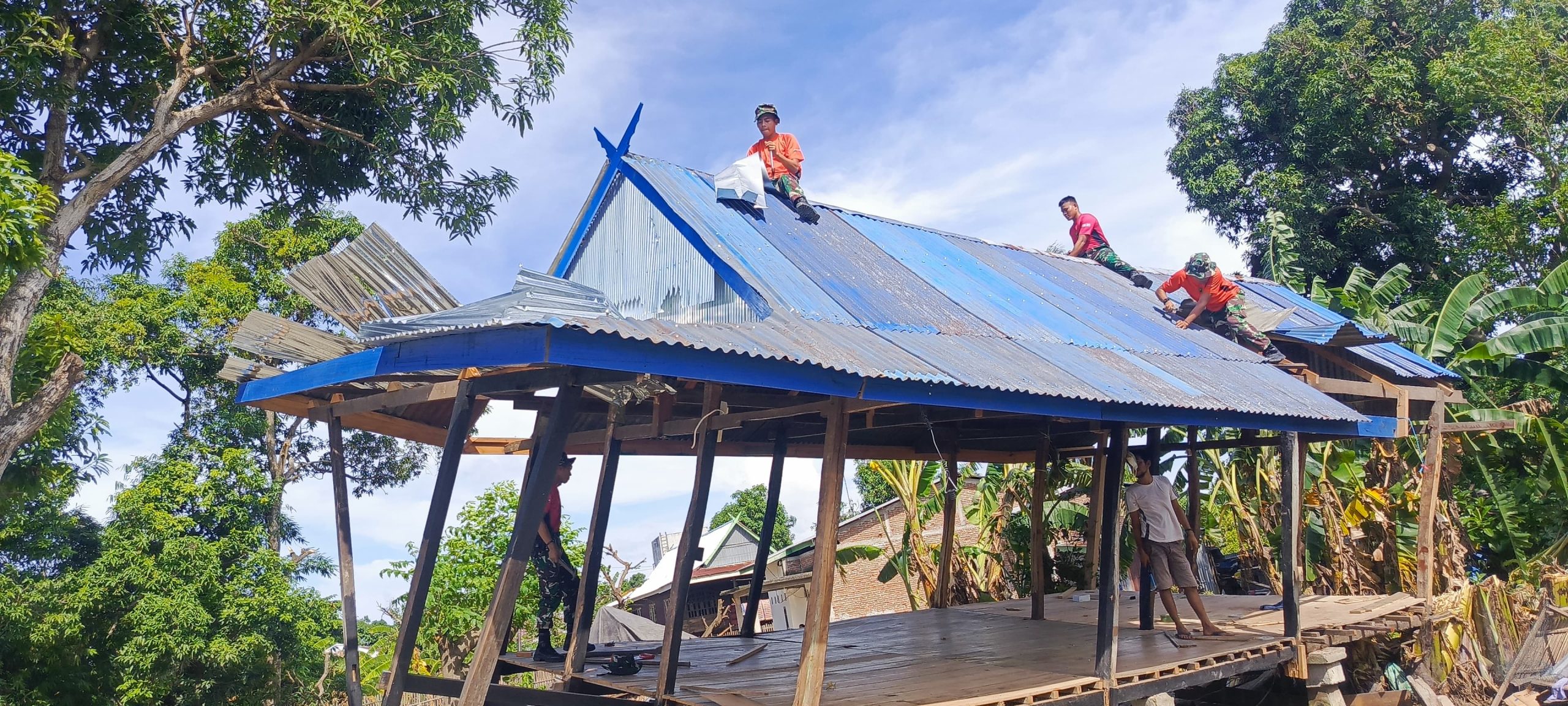 PINRANG – Sedikitnya 36 personel Yonif 721/Mks dan Pers Babinsa Kodim Pinrang melaksanakan penanggulangan bencana alam angin puting beliung H+4 di Lingkungan Kassie, Kelurahan Lanrisang, Kecamatan Lanrisang Kabupaten Pinrang, yang dilaksanakan pada Kamis, 18 Desember 2025.