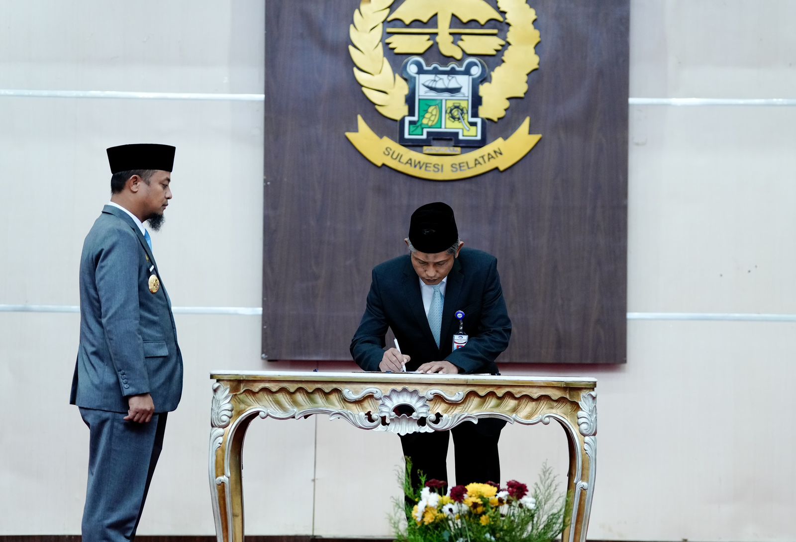 “Saya, Andi Sudirman Sulaiman dengan resmi mengukuhkan saudara Rasono sebagai Kepala BPKP Sulawesi Selatan. Semoga saudara dapat menjalankan amanah ini dengan baik,” ucap Andi Sudirman seraya membacakan SK.